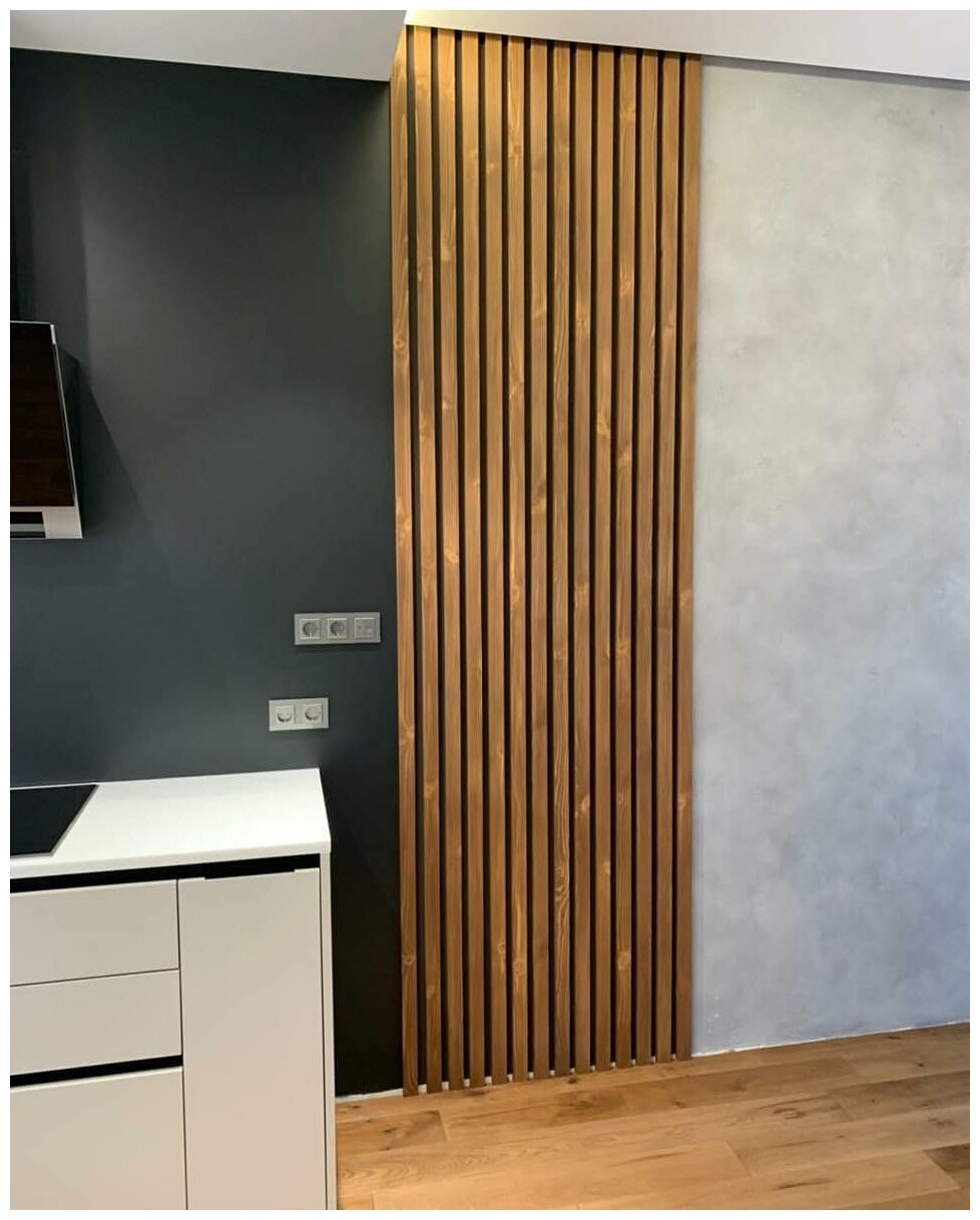 Рейка из массива Сосны 40х20х3000мм для декора стен, цвет 3442, с механизмом скрытого монтажа. Доступны любые породы дерева, размеры и цвета.