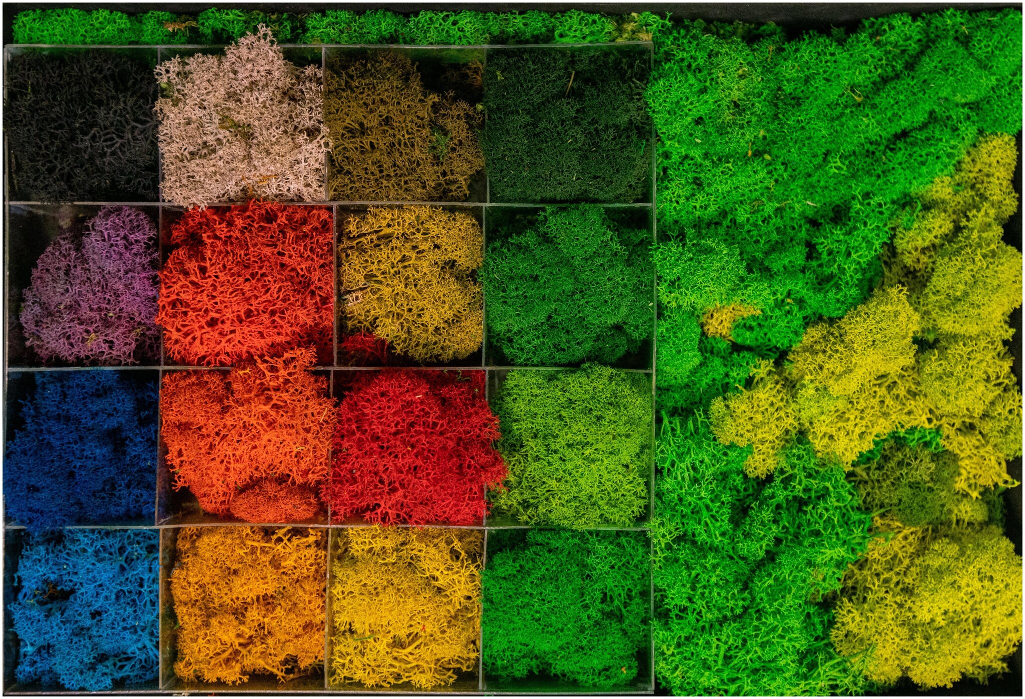 Размер панно 1295х1140мм. Комбинированное панно из стабилизированного мха: Ягель, Кочки, Пластовой, листья папоротника, амарант.