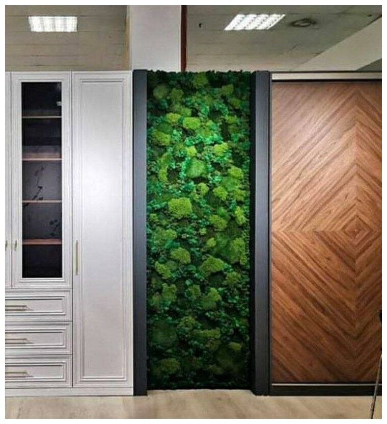 Размер панно843х2480мм. Сочетание нескольких видов мха (Ягель, королевский Ягель, кочки, пластовой).