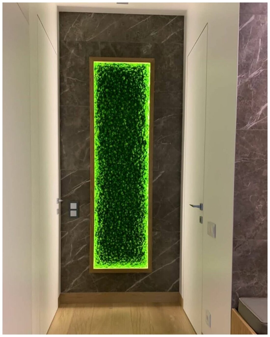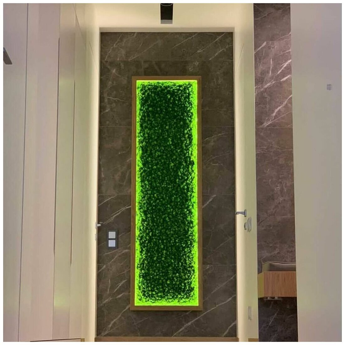 Мы производим стабилизированный мох Ягель, Кочки и Пластовой. Производство РФ, собирается в Сургуте, Казани и Сыктывкаре. Растения проходят все этапы производства, при помощи специальных составов с соблюдением сложных технологических процессов. Стабилизированные виды этих растений отличает подготовка к использованию. Она заключается в замещении всех биологических жидкостей специальным раствором, который приостанавливает все биологические процессы в растении. Такая стена из мха прослужит очень долго (5-7лет) и при этом, не изменит своего внешнего вида, а уход ей потребуется минимальный. Мох не статичен, но если он запылился, пыль можно сдуть холодным воздухом из фена.