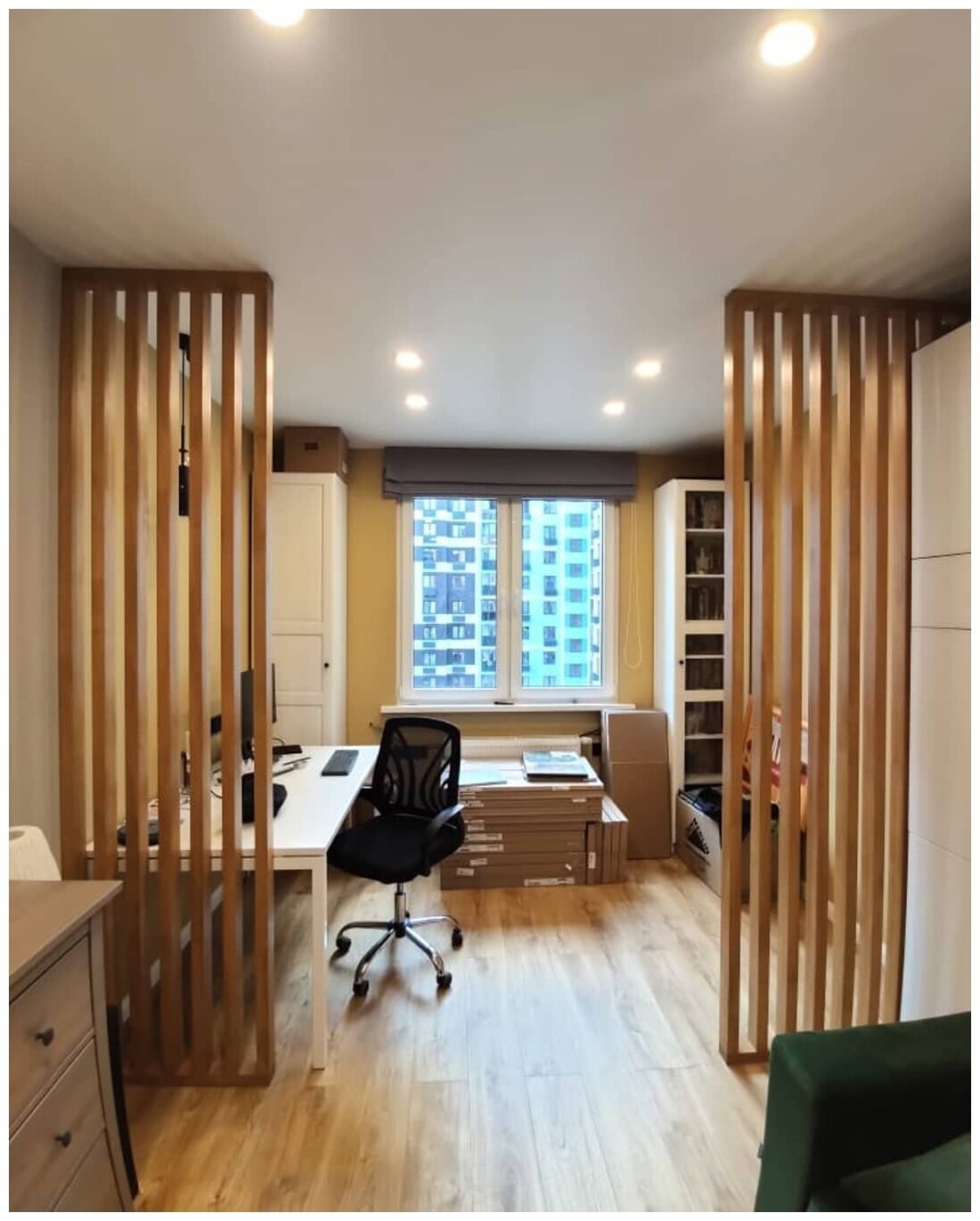 Брус цельноламельной склейки из Лиственницы 40х60х3000мм для реечной перегородки, цвет 5070, с механизмом скрытого монтажа пол/потолок. Доступны любые породы дерева, размеры и цвета.