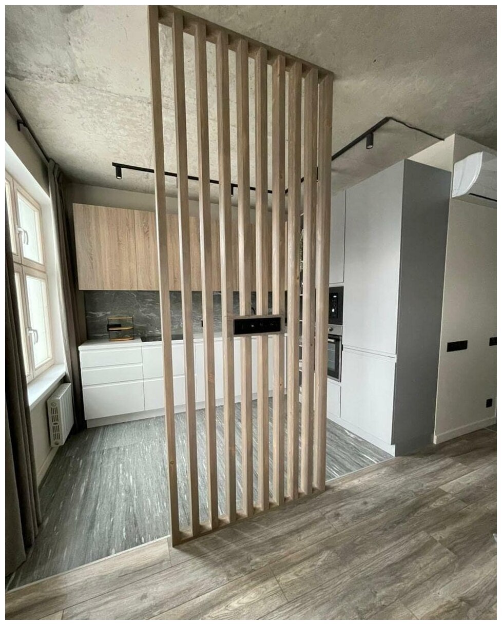 Брус цельноламельной склейки из Сосны 40х80х3000мм для реечной перегородки, цвет 5087, с механизмом скрытого монтажа пол/потолок. Доступны любые породы дерева, размеры и цвета.