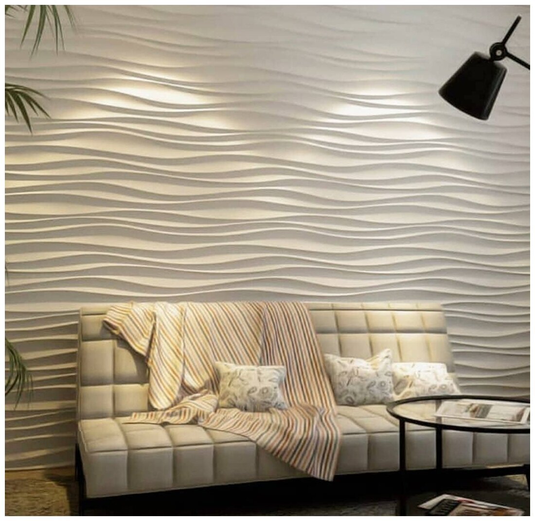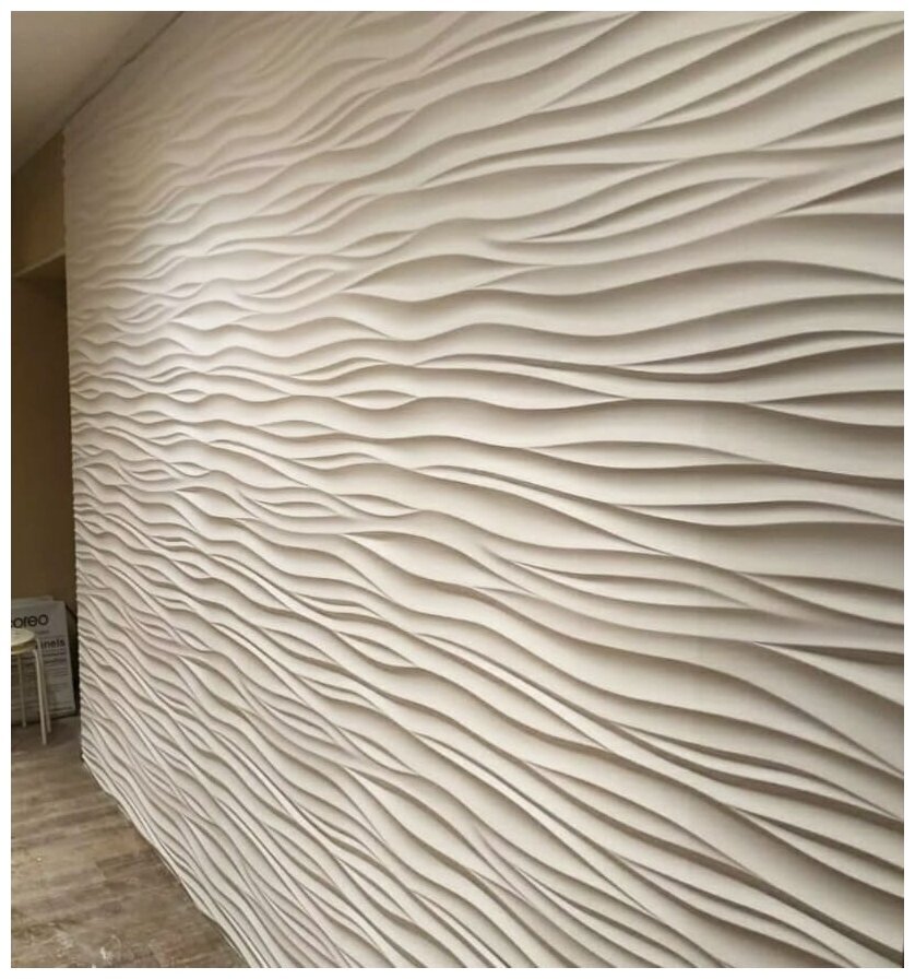 Стеновые 3D панели из наногипса под покраску 50х50см. Модель волна.