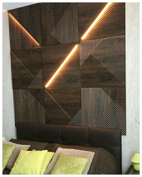 3D панели из сверхпрочного наногипса в ламинации "Дуб санома темный", 600х600мм